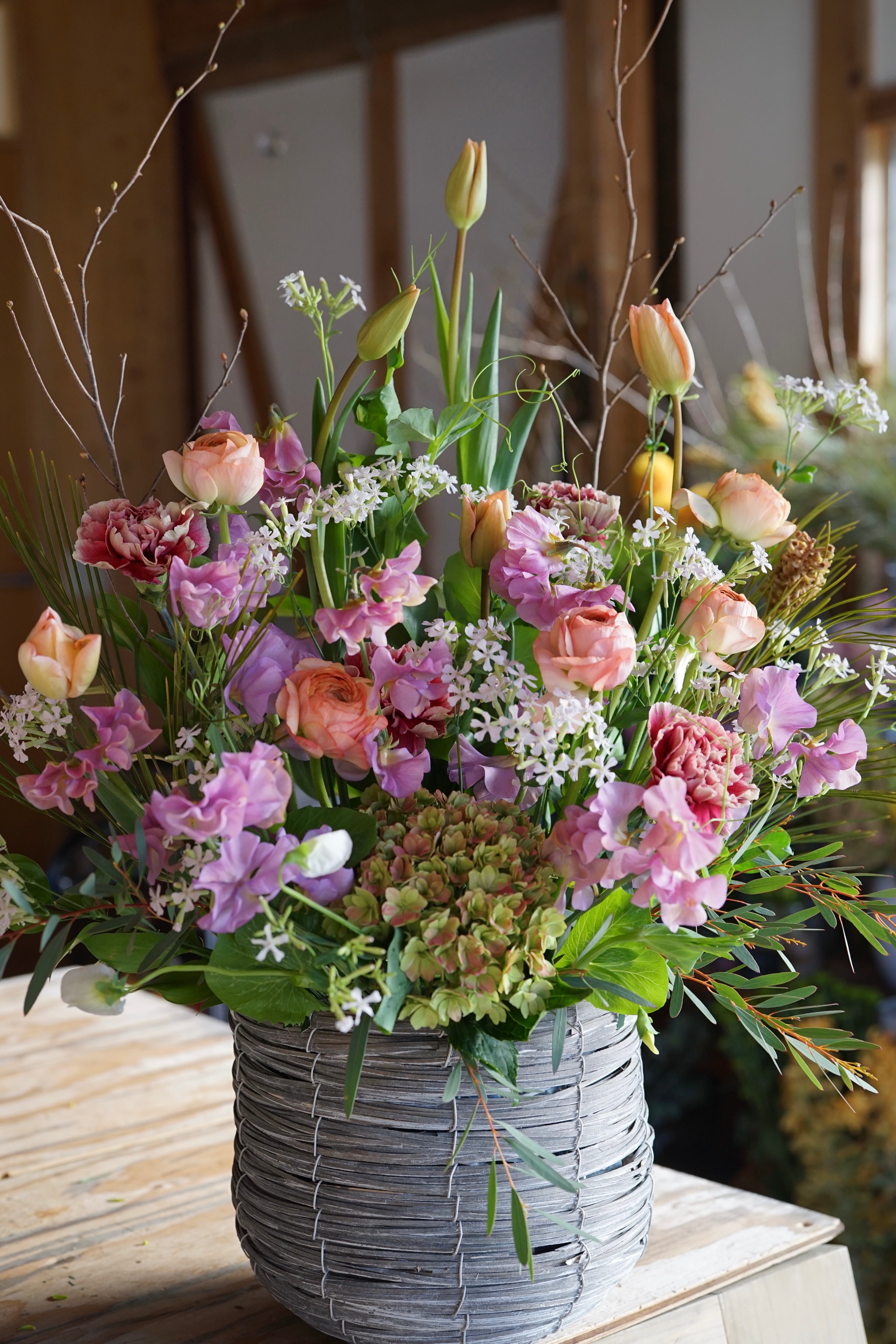 大切な方へのお祝いにぴったりのアイテムとして、この『お祝いのアレンジメント』は特別な日を華やかに演出します。新鮮な季節の花々を贅沢に使用し、どんなシーンにもマッチするようお客様からのヒアリングをし作成致します!贈り物としても自分へのご褒美としても最適です。